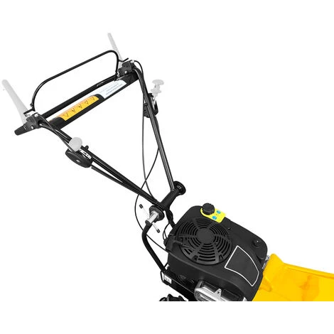 - Beim Bedienkomfort kann der Hochgrasmäher ebenfalls durch den höhenverstellbaren Lenkholm punkten, welcher auch schnell und ohne Werkzeug für den Transport zum Beispiel ein einem Auto eingeklappt werden kann.