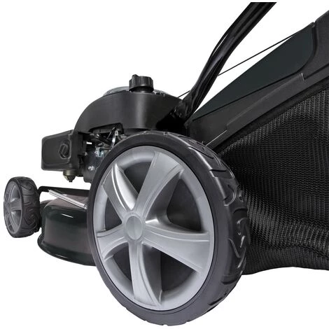 - Hinterrad-Antriebssystem, dadurch müheloses Mähen ohne Schieben (der Selbstantrieb kann z.B. zum Rangieren jederzeit ausgeschaltet werden)