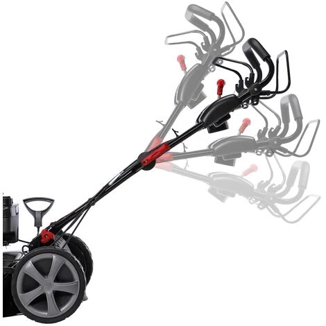 - Ergonomisch geformter, höhenverstellbarer Führungsholm mit Softgriff für bequemes Arbeiten, den Sie ganz auf Ihre Größe einstellen können. Zusätzlich können Sie unten am Chassis das Gestänge in 3 Höhen-Stufen auf Ihre Anforderungen anpassen.
