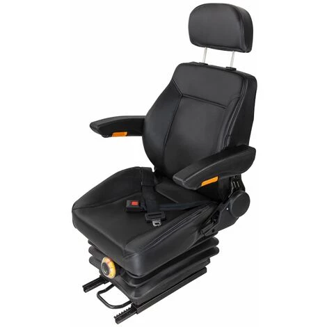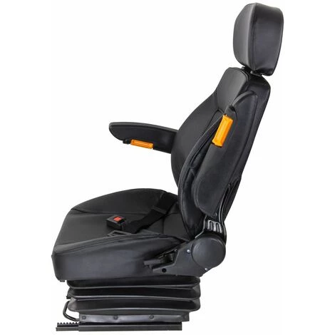 Fahren wie auf Wolken – mit dem DEMA Universal Traktorsitz mit Kopfstütze, Gurt und Armlehne.
