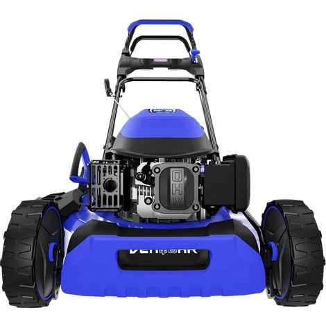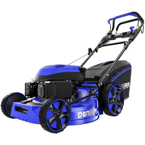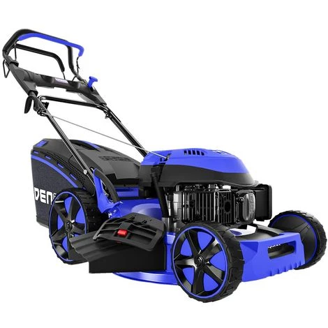 Merkmale: 53 cm Schnittbreite, 7in1 Funktionen, Farbe: Blau-Schwarz, 4,4kW (6 PS) 4-Takt MotorDie geballte Power von max. 4,4 kW (6 PS), die riesige Schnittbreite von 53 cm und die vielen Features – der DENQBAR Benzin-Rasenmäher DQ-R53EV ist der ultimative Luxus-Rasenpfleger! Ein äußerst effektives und komfortables Mäherlebnis garantieren der riesige Grasfangkorb (65 Liter Volumen), der E-Start, die Gangwahl, die Schnitthöhenverstellung, der Radantrieb, die kugelgelagerten Big Wheels, die Reinigungsfunktion und der schwingungsgedämpfte Führungsholm mit Soft-Grip-Griff. Mit diesen Eigenschaften erobert der DENQBAR Benzin-Rasenmäher DQ-R53EV die Herzen aller Gartenfreunde im Sturm! Ob Gebrauchsrasen, einladende Liegewiese oder stylischer englischer Rasen – der robuste und flexibel einsetzbare DQ-R53EV hat die Standards in der Rasenpflege neu definiert.AntriebMotor: 4-Takt luftgekühlt, OHVmaximale Motorleistung: 4,4 kW (6 PS)Geräteleistung: 4,2 kWHubraum: 196 ccmMotordrehzahl: 2.800 U/minStartsystem: SeilzugKraftstoff: Benzin (E10 geeignet)Tankinhalt: 1,0 lÖl: SAE 10W-30 oder besserÖlmenge: 0,6 lMaße & GewichtGewicht: 43 kgL x B x H (einsatzfähig): 156,5 cm x 55 cm x 103 cmGeschwindigkeit: 5 km/hSchnitthöhenverstellung: 25 mm – 75 mmFangkorbvolumen: 65 Liter