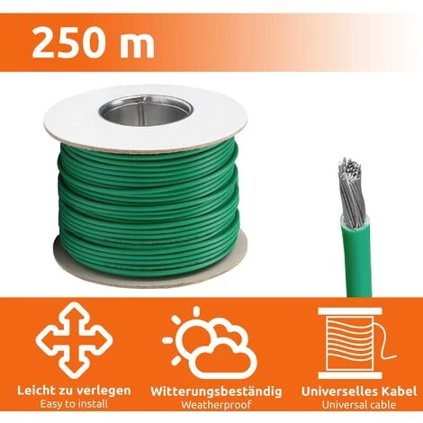 Für alle Mähroboter Modelle geeignet250m LängeBegrenzungskabel, Führungskabel und SuchkabelMit starker und beständiger IsolierungPraktische Abrollhilfe