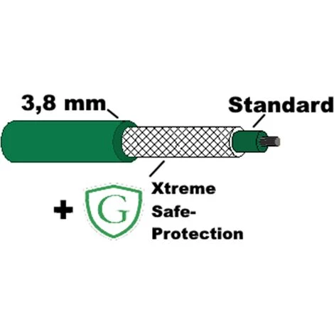 Kabelstärke (mit extra beständiger Isolierung 3,4mm + Drahtgeflecht + Ummantellung): 3,8mm