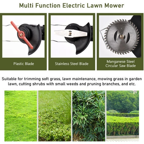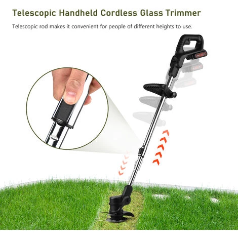 Teleskopstange, ergonomisches Design — Die Teleskopstange macht es für Menschen bequem verschiedene Höhen zu verwenden. Der Zusatzhandgriff ist abnehmbar und verstellbar. Schutzabdeckung für sicheren Gebrauch und um zu verhindern, dass das Gras spritzt. Der geräuscharme und wasserdichte Motorkopf ist leicht zu waschen.