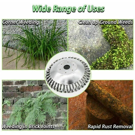 Dieser Trimmerkopf ist für die meisten Trimmer geeignet und wird mit zwei verschiedenen Adaptersätzen geliefert, die einfach zu installieren sind. Der Stahldraht-Trimmerkopf kann leicht Moos und unordentliches Unkraut in Ihrem Rasen, Garten und auf Gehwegen entfernen.