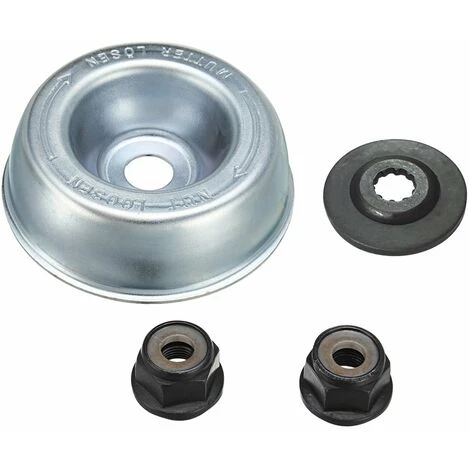 Hier ist ein Set aus einer Schutzabdeckung, einer Druckplatte und zwei Muttern zum Austausch des Zubehörs von STIHL FS120, FS200, FS250.