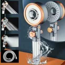 El principio del ventilador del turbocompresor es mejorar la estructura interna del cabezal de la ducha para aumentar la presión de aire interna de la ducha de mano. Cuando el agua ingresa al cabezal de la ducha, se mezcla por completo con el aire para crear una poderosa corriente de agua. Puede ayudarlo a deshacerse del problema de baja presión de agua.