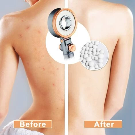 【TRES CAPAS ACTUALIZADAS FILTRO】 Endurece mejor el agua dura y elimina el cloro, los metales pesados, las bacterias, el óxido y los olores del agua de la ducha. Ideal para duchas, dispositivos de masaje de cabeza, baños para bebés y mascotas y limpieza de baños.