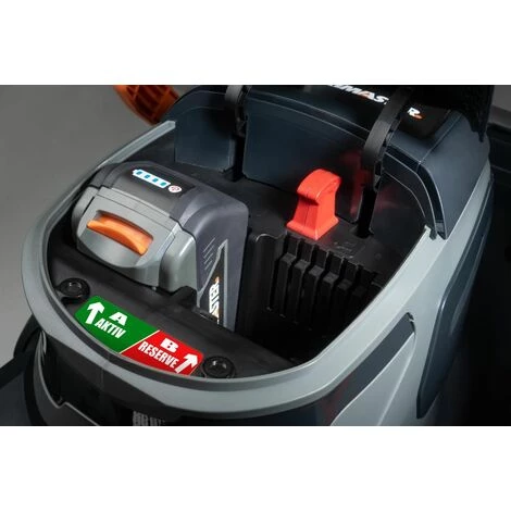Kraftvoller 40 Volt Primaster Stahldeck Akku-Rasenmäher mit einer empfohlenen Flächenleistung bis 500m². Durch bürstenlosen Motor langlebig und verschleißarm. Doppelt kugelgelagerte Leichtlaufräder (vorne 180 mm / hinten 200 mm). Mit dem im Lieferumfang enthaltenen 4,0 Ah Akku beträgt die max. Laufzeit 45 Minuten. Das ebenfalls im Lieferumfang enthaltende Ladegeräte (2,1 A) lädt den 4,0 Ah Akku in ca. 120 Minuten wieder auf. Die Schnittbreite beträgt 46 cm und die zentrale Schnitthöhenverstellung kann in 6 Stufen (25-75 mm) eingestellt werden. Klappbarer Führungsholm mit Schnellverschlüssen sowie Mow and Stow Funktion. Die dadurch mögliche senkrechte Lagerung ist deutlich platzsparender und reinigungsfreundlicher. Ein Tragegriff am Gerät ermöglicht einen kraftschonenden Transport. Der Fangkorb hat ein Fassungsvermögen von 65 Liter und ist mit einer Füllstandsanzeige ausgestattet. Die Mulchfunktion ermöglicht das Schneiden ohne Fangen. Im Lieferumfang ist ein Akku 4,0 Ah und ein