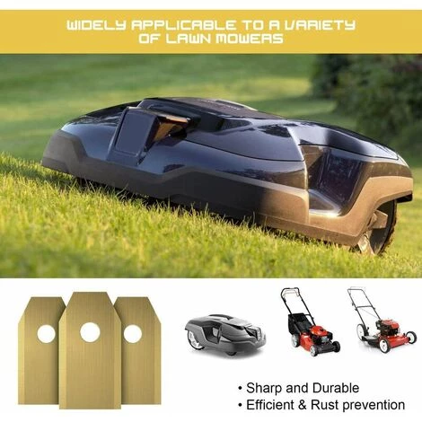 Titan-Rasenmähermesser – Hergestellt aus hochwertigem Edelstahl mit Titanbeschichtung, ausgezeichneter Rostbeständigkeit, Antisäure und Alkali, verschleißfest, um die ultimative Haltbarkeit zu bieten