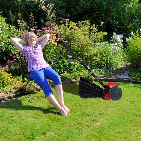 Mit dem Handrasenmäher ersparen Sie sich die Suche nach einer Steckdose und das Herumhantieren mit Akkus. Der mechanische Rasenmäher funktioniert via Handbetrieb. Das schont die Umwelt und verursacht keinen störenden Lärm. Die optimale Schnitthöhe stellen Sie selbst ein – 3 Stufen sind möglich. Geschnittenes Gras gelangt in den Auffangkorb. Der Korb lässt sich mit wenigen Handgriffen entfernen und wegbringen. Der bewegliche Griff des Spindelmähers ist mit Schaumstoff ummantelt und liegt daher sehr angenehm in der Hand.