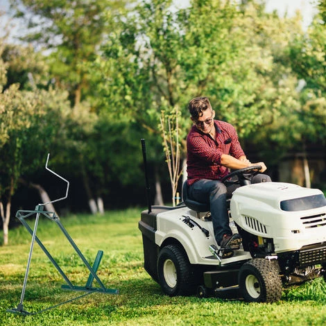 Mit dieser praktischen Hebevorrichtung können Sie alle Arten von Kleintraktoren, Aufsitzrasenmähern und Quads einfach aufbocken. Reinigungsarbeiten am Mähwerk, Wartungen und Reparaturen sind dadurch schnell und einfach möglich. Der Traktorheber kann bis zu einem Winkel von ungefähr 45 Grad stufenlos eingestellt werden. Die massive Stahlkonstruktion der Rasentraktor Hebebühne kann dabei ein Gewicht von bis zu 400 kg tragen und steht stabil und sicher auf dem Boden.