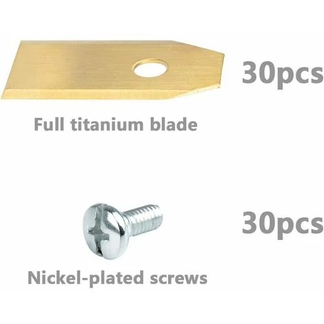 【Application and Compatibility】 For Husqvarna, Gardena and Yardforce Automower models/types: 105, G1, G2, Solarhybrid, 220AC 230ACX 260ACX 265ACX 305 308 310 315 320 330ACX 420 40 440. 50X R3 8Li R405Li R45Li0 R45Li R70Li R75Li R80Li30Li R1 R1 R1 R75Li R80Li30Li R1 R1 R165 R180, Yardforce, Sileno smart Sileno Sileno + smart Sileno + PREMIUM MATERIAL: Hergestellt aus hochwertigem Edelstahl mit Titanbeschichtung. Titanbeschichtung bietet hervorragende Rostbeständigkeit, gute Beständigkeit gegen 【Präziseste Schnittergebnisse】Genießen Sie einen einzigartigen und gleichmäßig glatten Schnitt: Unsere Messer sind speziell gehärtet, speziell geschärft und schneiden präziser als je zuvor【Die hochwertigen und langlebigen Ersatz-Roboter-Rasenmähermesser sind fein poliert, extrem dünn und scharf – 0,75 mm dick, 3 g. Diese Klingen müssen nicht häufig gewechselt werden. Sie werden nicht rosten, brechen oder lange scharf bleiben. Die mitgelieferten Schrauben sind ebenfalls aus Edelstahl. 【Hohe Sicherheit】 Ersatzmesser für Mähroboter Dank des hochwertigen Materials sind diese Messer schwerer zu brechen. Auch wenn die Klinge auf Widerstände (Steine etc.) trifft. Ideal für die Sicherheit von Tieren und Kindern. Vorteile: 100 % kompatibel mit den Originalklingen. Erstklassige Edelstahl- und Titanbeschichtung für hervorragende Rost-, Säure- und Alkalibeständigkeit. Innovative Zusatzbeschichtung für lange Lebensdauer. Scharf genug für einen perfekten und effizienten Rasenschnitt Einfach und schnell zu montieren. Platzsparend. Kleine Verpackungsbox Spezifikationen: Material: Edelstahl. Beschichtung: Titan. Menge: 45 Ersatzklingen, 45 Schrauben. Dicke: 0,75 mm/Stück. Gewicht: 3 g/Stück. Schraubenlänge: 11 mm Roboter-Ersatzklinge Abmessungen: 35 mm x 18 mm x 0,75 mm. Inhalt: 45 Ersatzmesser für Husqvarna Automower / Gardena / Yardforce. 45 Edelstahlschrauben. Hinweis: 1. Ersatzklingen sind extrem scharf, bitte beachten Sie dies beim Zusammenbau. Tragen Sie immer Handschuhe und ggf. eine Schutzbrille. Bitte halten Sie Titanmesser aufgrund ihrer Schärfe von Kindern und Haustieren fern.